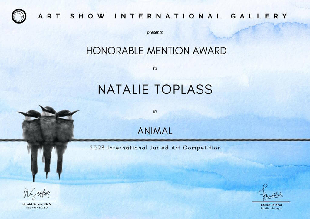 My work has been shown both internationally and domestically with my work featuring with several galleries; most recently with The Royal Society of Artists. I've published in Artists and Illustrator's magazine in 2007, Shropshire Living Magazine 2021 and Collect Art magazine in 2023 and 2024 and additionally been invited to deliver several masterclasses at the prestigious West Dean College, in Chichester.