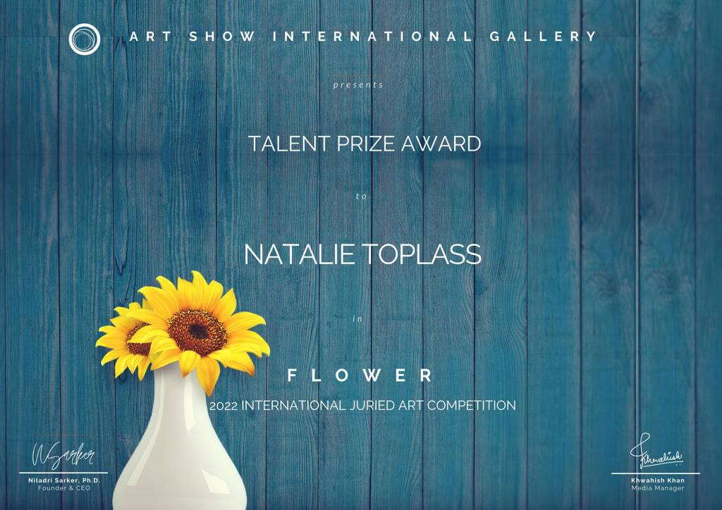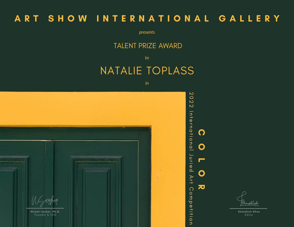 “Natalie aims to convey the feelings and sense of pleasure she feels while being surrounded by nature, even the simplest of things stir emotions. She wants the viewer to have an experience that encompasses sensations beyond that of the image itself. Therefore, the scale of her work is important. By enlarging the scale, the nature of the subject is intensified, and enables the viewer to become surrounded by the beauty or whimsy of the subject.”